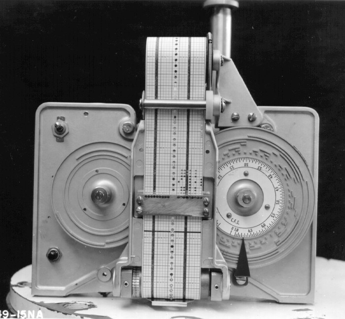 Digital recorders used in water stage measurements usually include two types: punched-paper tape (figure 6-6) and analog-to-digital data loggers. Both types are electrically operated (usually by batteries) and record numbers either on the paper tape or in memory at selected time intervals.
