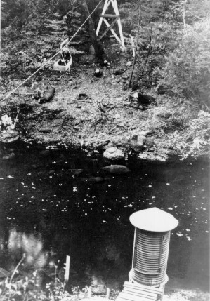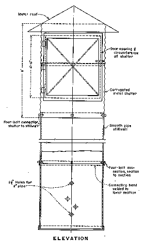 Figures 6-9 and 6-10 show designs of typical installations of a more permanent nature. Installation cost is an important consideration in the selection of a structure. Shelters often become attractive targets for firearms, so higher initial costs of permanent installations may be offset by savings in undamaged equipment and complete records. Figure 6-11 shows a current meter gaging station with cable, car, corrugated steel shelter house, and stilling well.