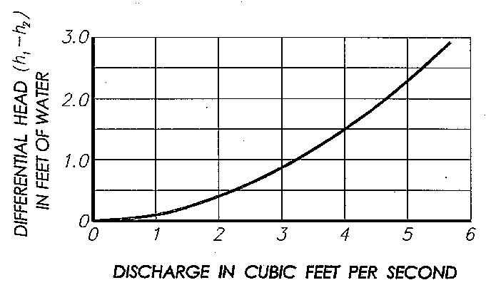 With differential flowmeters, the pressure difference between the inlet tap and the throat or minimum pressure tap is related to discharge in tables or curves using the suitable coefficients with the proper equation. An example discharge curve is shown for an 8-inch (in) venturi meter on figure 14-1. Thus, the meters may serve as reliable flow measuring devices.