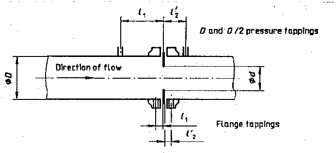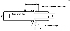 More recent orifice standards are based on extensive experimental data and can be applied with a fair degree of confidence. Studies carried out in Germany, the United States, France, and Britain resulted in the present ISO-5167 (1991) (adapted from British Standards-1042 [1943], and Dijstelbergen [1982]). The standards list the geometry of the devices, the installation conditions to be observed, and the equation relating flow and pressure differential. Three types (figure 14-5) of differential measuring taps as internationally standardized are: